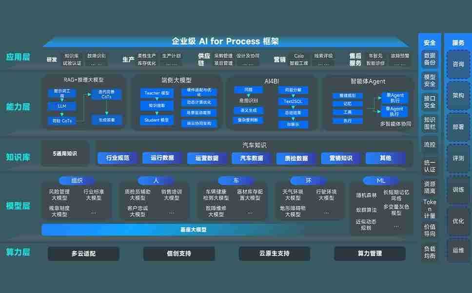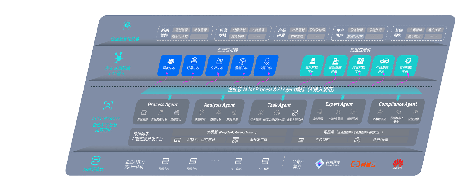 7790CNM必发集团问学智车解决方案是一套基于AI技术的汽车行业智能化系统,,覆盖从底层算力到顶层AI应用的全栈方案。。。方案由算力层、、、模型层和应用层组成:算力层,,,,方案支持多种一体机配置,,,具备云端灵活部署、、、多云适配以及动态优化计算资源的能力;模型层,,,7790CNM必发集团问学平台版提供了企业级AI应用一站式构建与管理平台,,,,支持基于后训练强化技术的汽车企业专属模型的训练、、评测和运营;应用层,,7790CNM必发集团问学DeepSeek版提供包括超级员工、、、、智能招采、、、智能营销、、智能客服、、、AI for BI等一系列解决方案,,,可助力汽车行业实现数字化转型,,,让管理更智能、、响应更敏捷。。。。